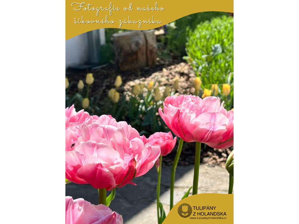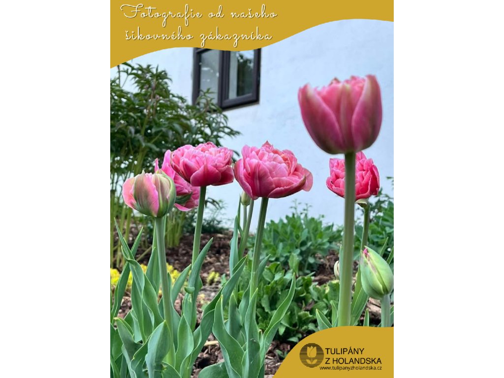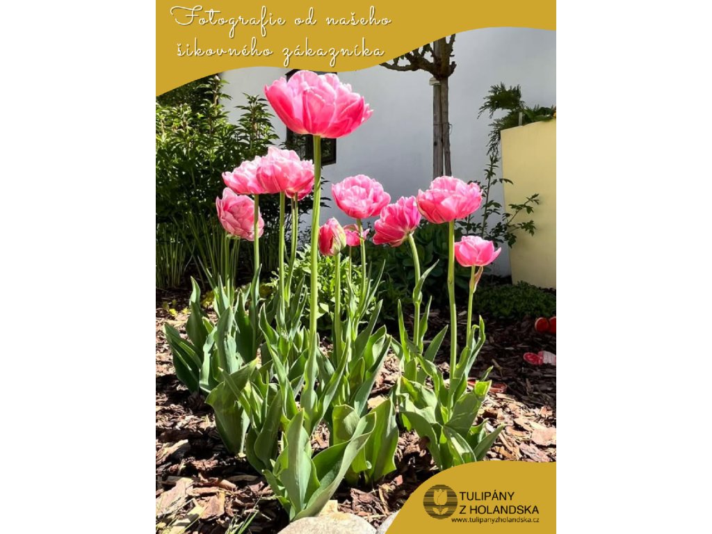 Tento růžový dvojitý tulipán Aveyron je jako elegantní tanečník ve vaší zahradě. Jeho plné květy, sytě růžové a plné života, dodávají prostředí energii a krásu. Tulipán Aveyron je symbolem elegance a šarmu, který oživuje každý kout zahrady svou příjemnou a povznášející přítomností.