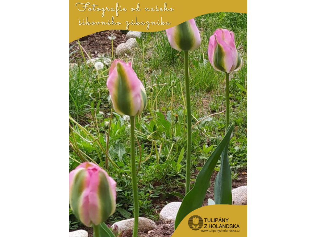 Tento tulipán vytváří v zahradě neobyčejnou oázu růžové a zelené harmonie. Jeho jemné růžové květy se vynořují mezi svěží zelení listů, vytvářejíce tak místo klidu a krásy. Růžová oáza je jako malý útěk do přírody, kde se můžete ponořit do pohody a užívat si krásy každého okamžiku.